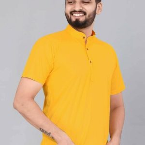 DIVRA CLOTHING Men Yellow Solid Polyester Straight Kurta